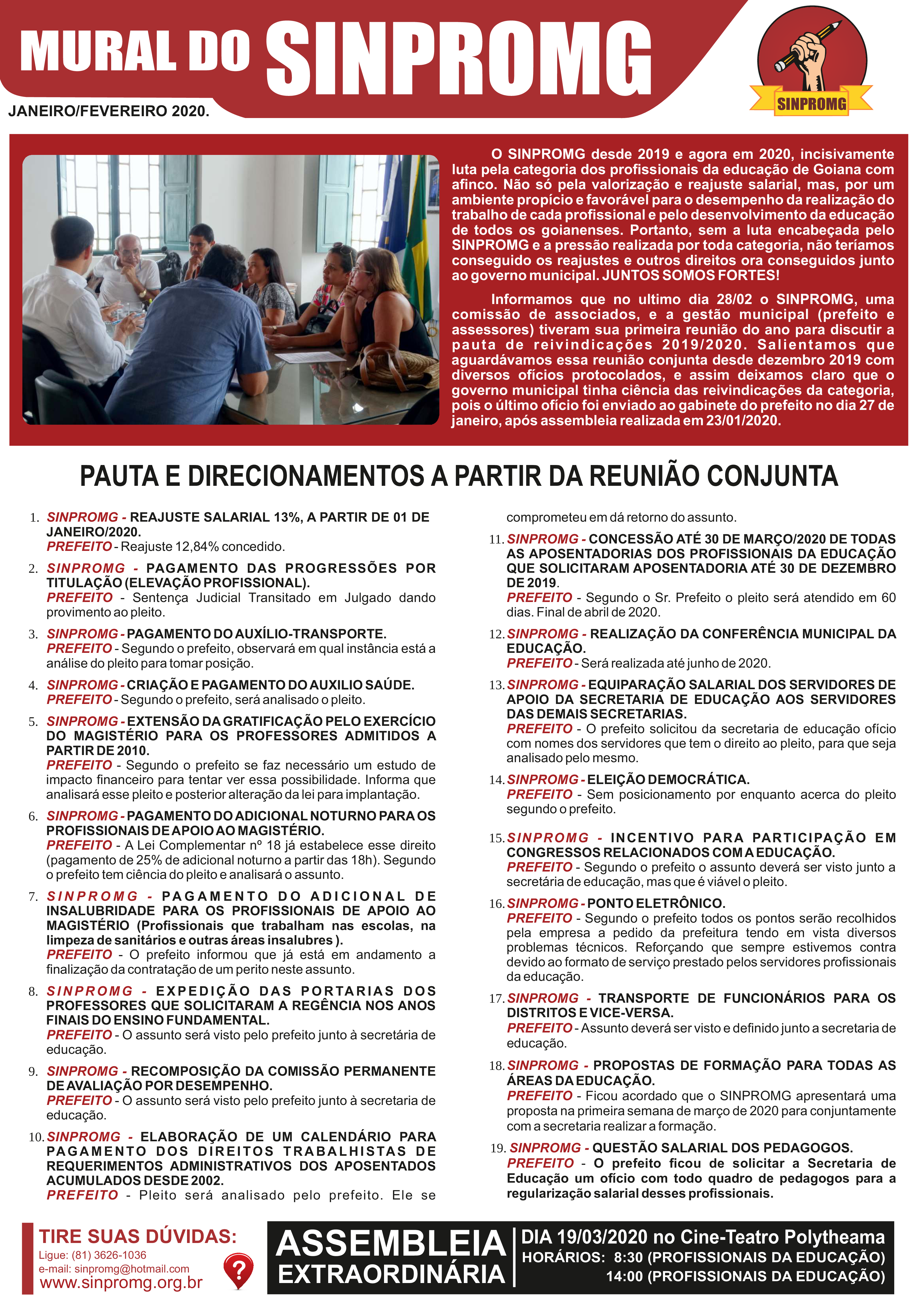 Mural do SINPROMG Jan e Fev/2020